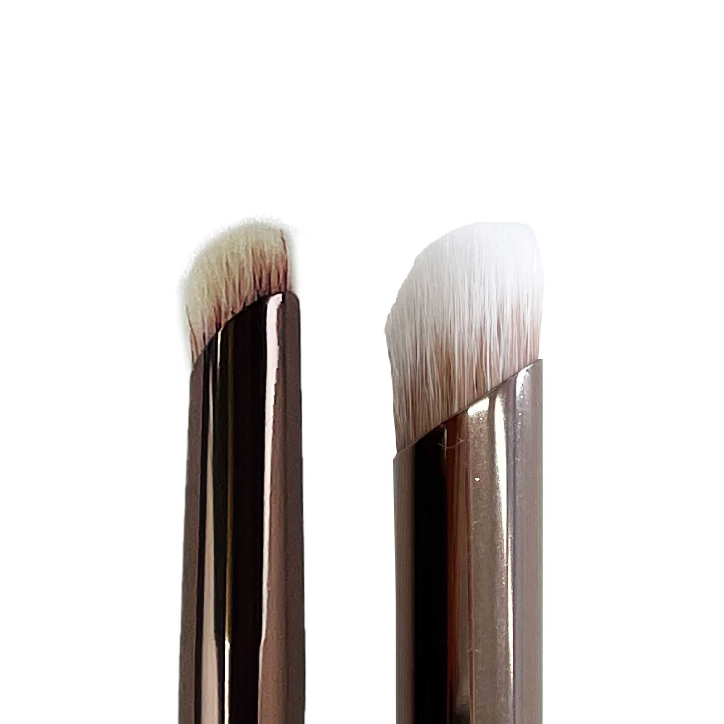 面でも点でも使える三角形ブラシ。フラットな面と3つの角でしっかりとカバーします。ボリュームのある毛量が密着力を高め、均一に仕上げます。