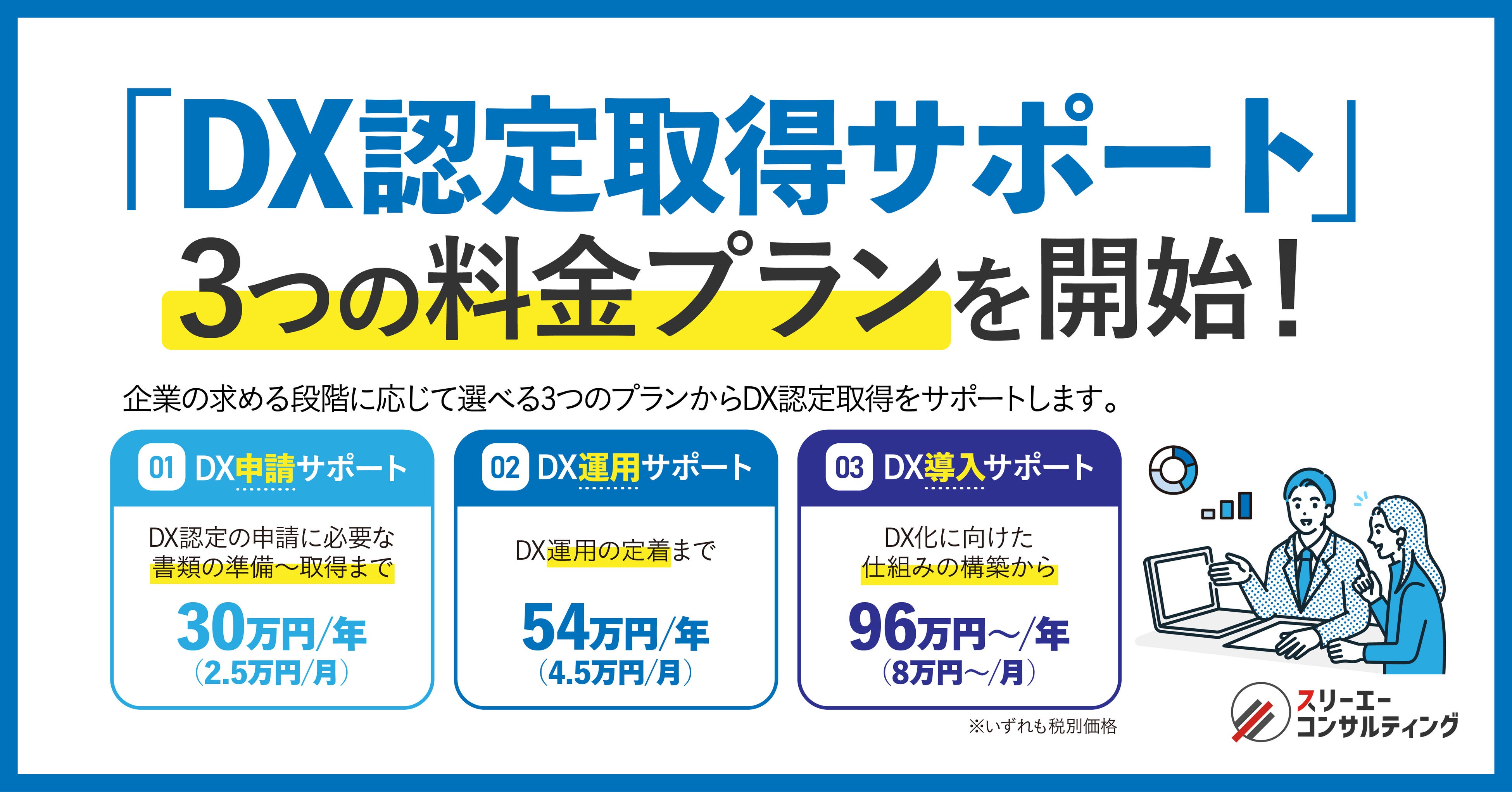 スリーエーコンサルティング『DX認定取得サポート』【申請】【運用】【導入】3つの料金プランを開始!月額2.5万円でスピード認証
