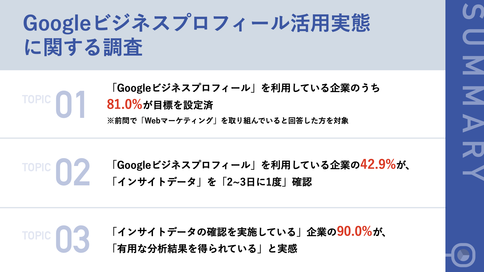 - 「Googleビジネスプロフィール」を利用している企業の42.9%が、「インサイトデータ」を2~3日に1度確認