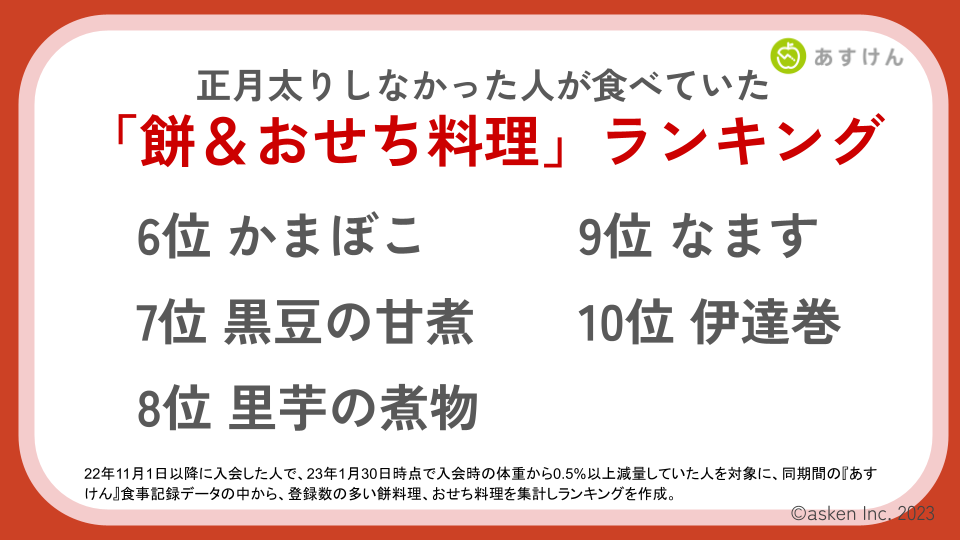 ■正月太りをしなかったダイエッターが食べていた「餅&おせち料理」の人気ランキング TOP10