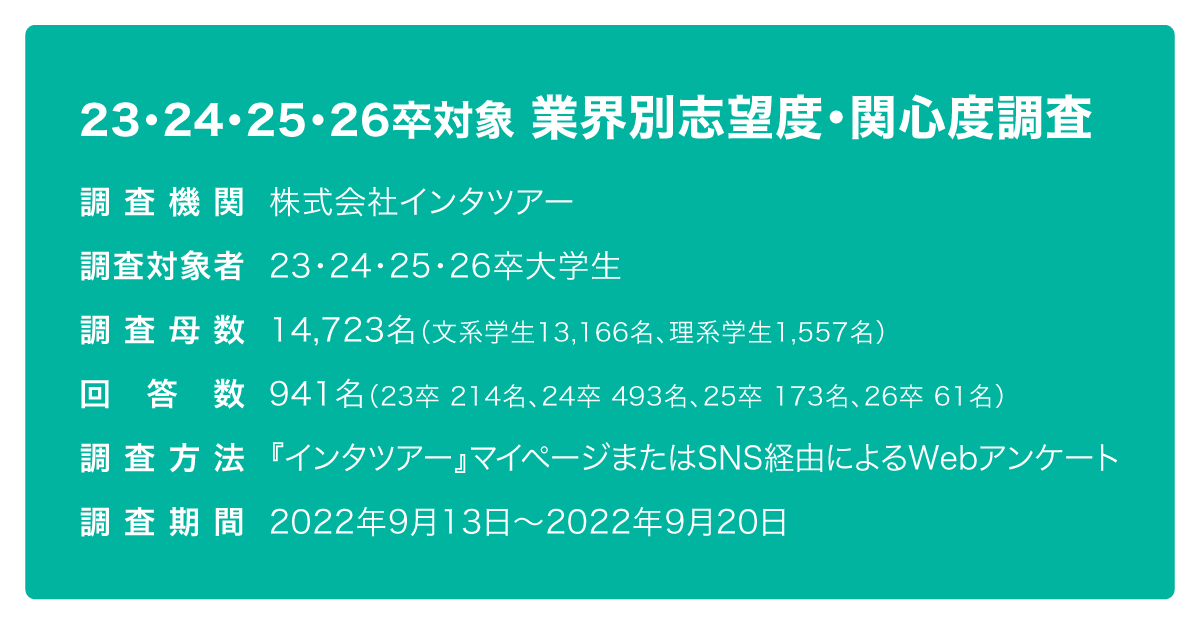 『23・24・25・26卒生対象 業界別志望度・関心度調査』2022年9月実施 株式会社インタツアー
