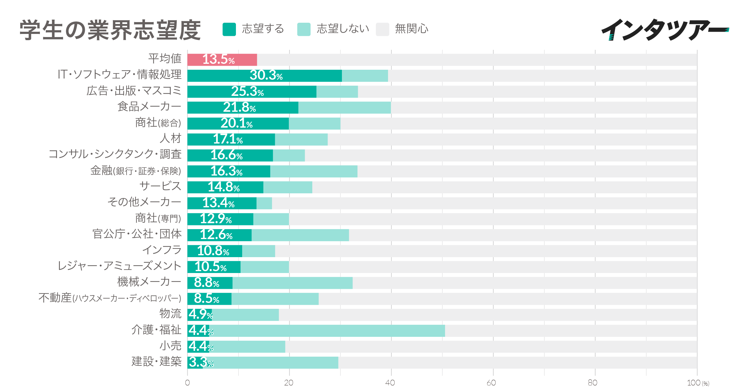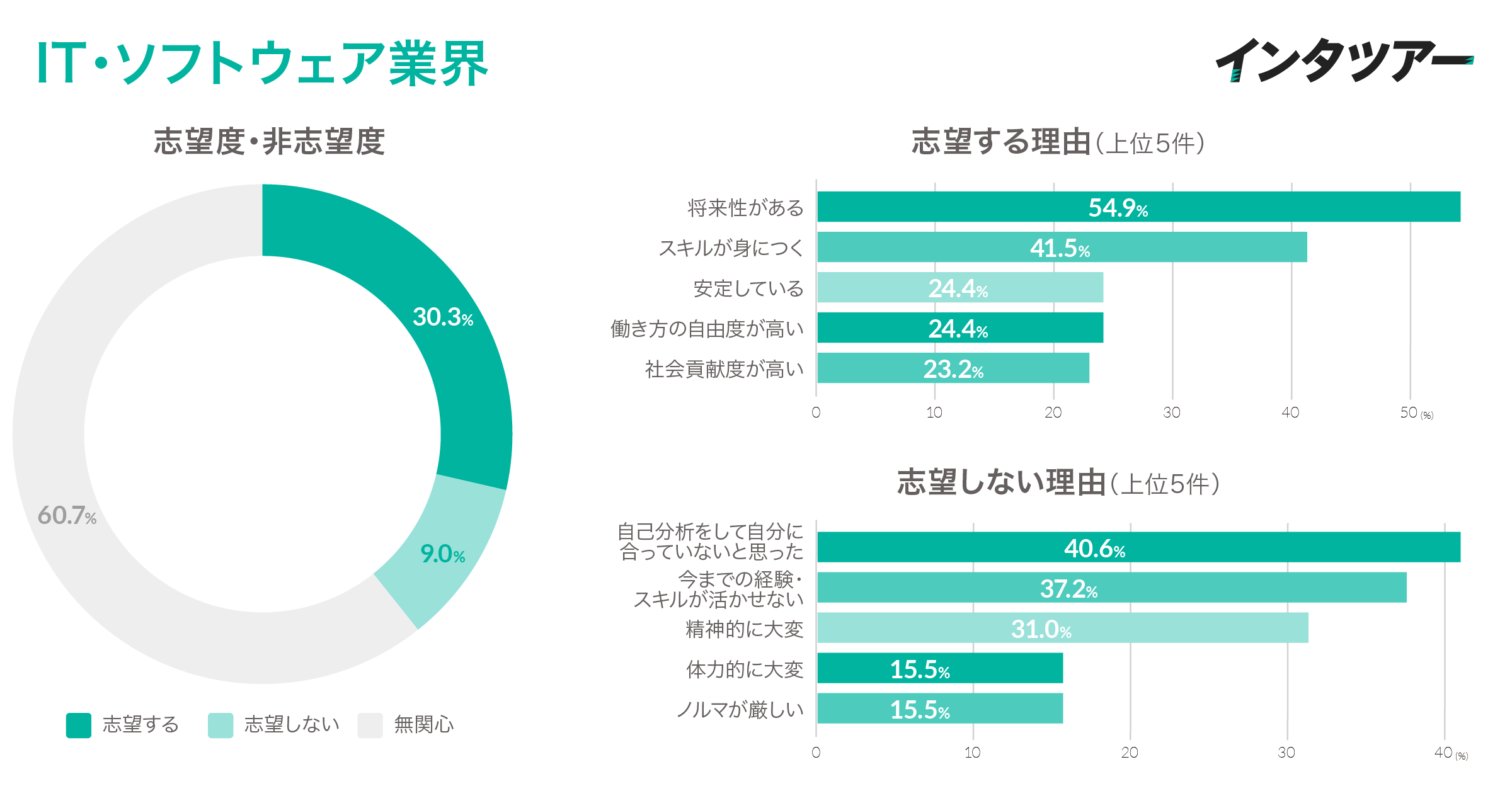 - IT・ソフトウェア業界 志望学生は30.3%で志望度1位 志望理由1位は「将来性がある」