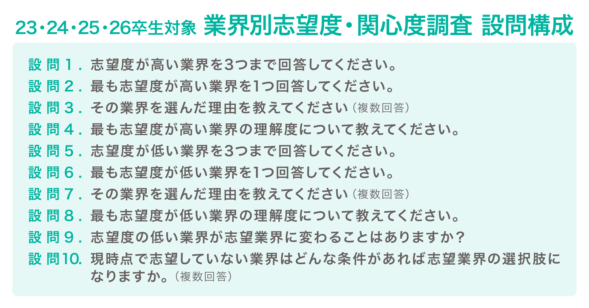- 23・24・25・26卒生対象 業界別志望度・関心度調査 設問構成