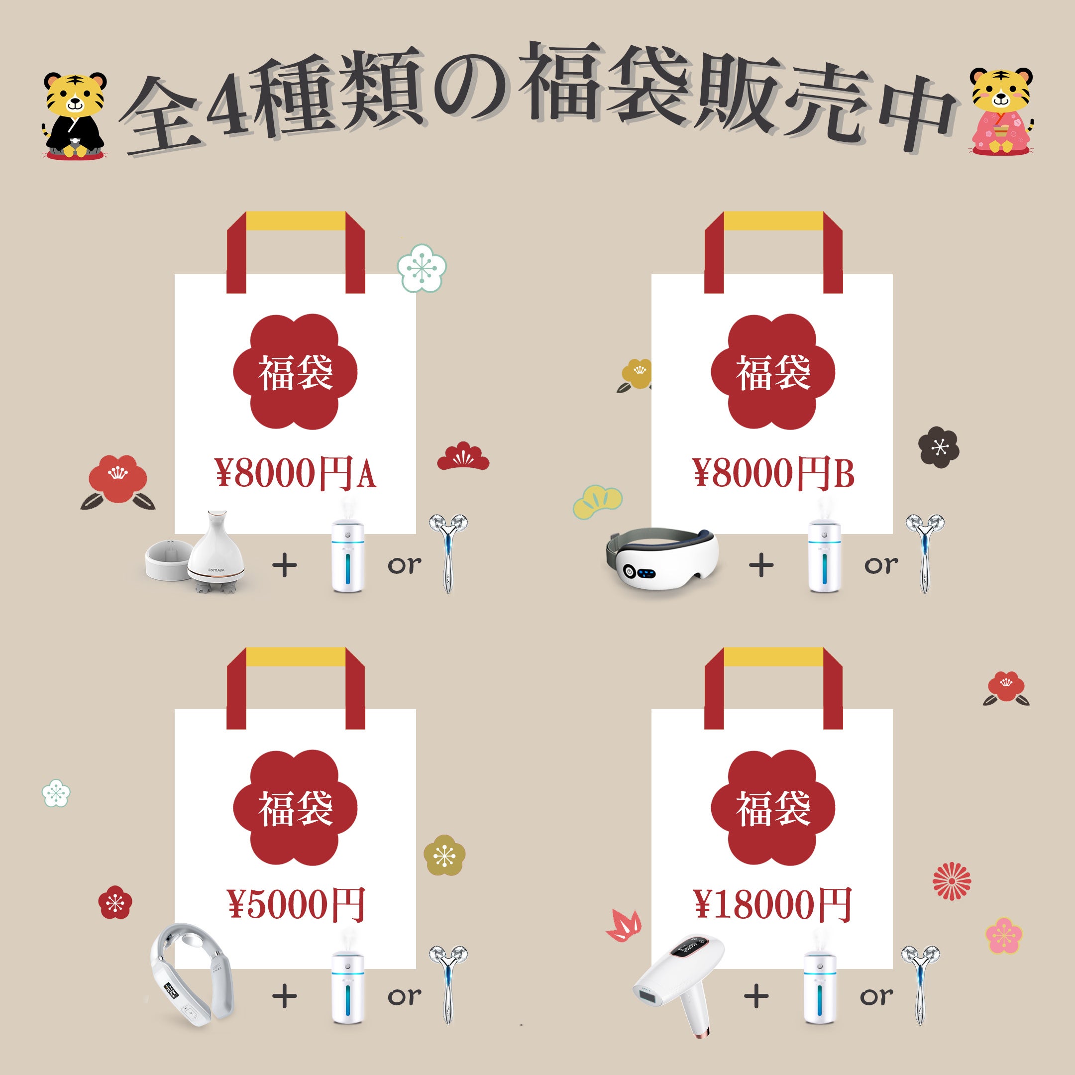 👉 5000円福袋:ネックリフレッシュ + 卓上加湿器orフェイス ローラー