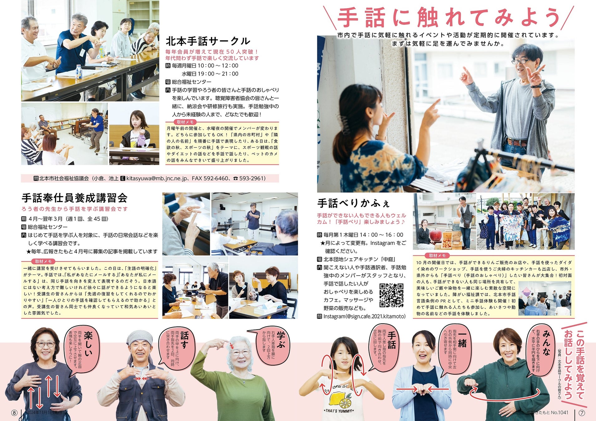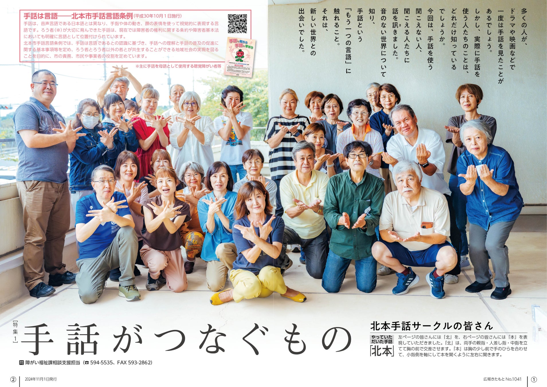 広報きたもと令和6年11月号は、特集「手話がつなぐもの」を掲載。ろう者や手話勉強中の健聴者、手話通訳者のインタビューと、気軽に手話に触れるイベント情報等をお届けします。