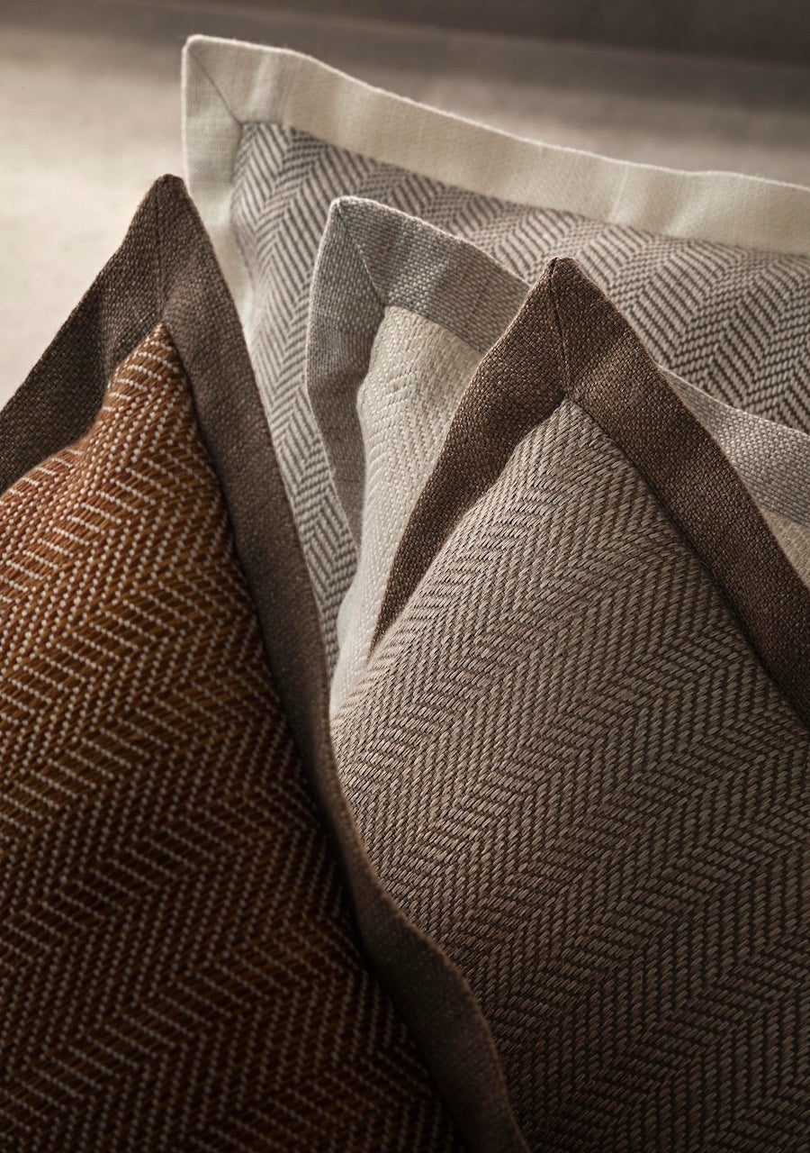 コッレは、マイクロヘリンボーン・モチーフが施されたダブル幅のリネン生地で、布張りやカーテンに最適。ナチュラからアクセントシェードまで5色からお選びいただけます。