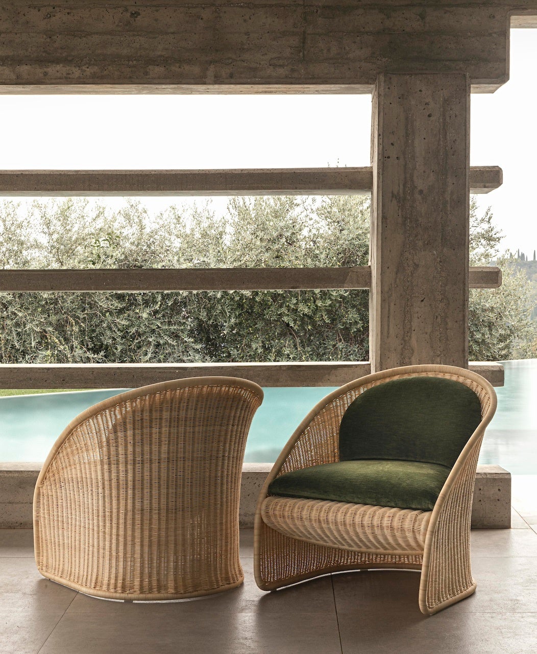 ラファエル・ナヴォがロロ・ピアーナ・インテリアのためにデザインしたパームウィッカーアームチェアは、パームアームチェアのウィッカーバージョンです。すべて手仕事で編まれた職人技の逸品です。彼がデザインしたアームチェアの柔らかな曲線と、包み込まれるようなやや傾斜した背もたれを表現するために、ウィッカーを成形する複雑な作業には多くの入念な研究が費やされました。各作品はフォルムと機能が融合したもので、快適で心地よいシートは、包み込むような手のラインから着想を得たパームアームチェアのオリジナルコンセプトと共鳴しています。