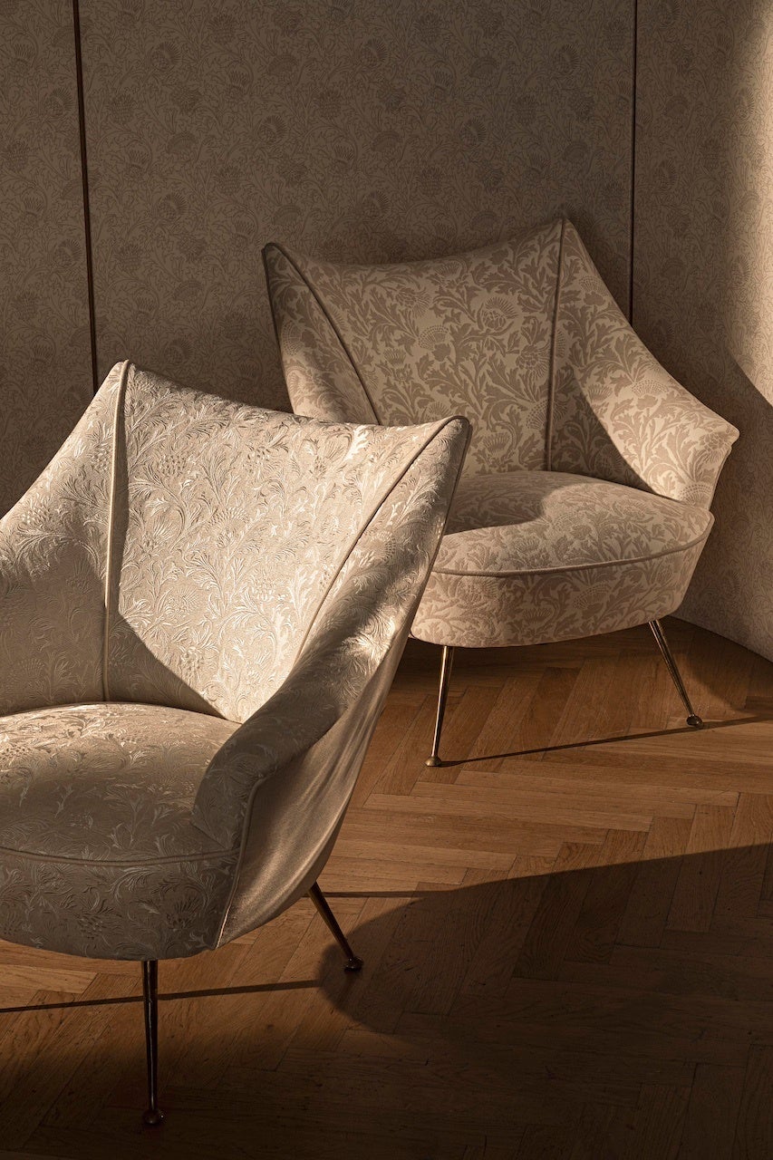 ロロ・ピアーナ・インテリアはテキスタイルのノウハウの象徴であり、ロロ・ピアーナの歴史に欠かせないアザミの花に敬意を表します。アザミは、ロロ・ピアーナの紋章にも描かれています。家具や装飾品、繊細な壁紙にエレガントな花を咲かせています。ロロ・ピアーナの100年にわたる歴史を物語る主要なテーマのひとつとして選ばれたアザミの花は、ジャカード、刺繍、プリントなど独自の技術でこのモチーフを再現した非常に洗練されたカプセルコレクションにその名がつけられています。