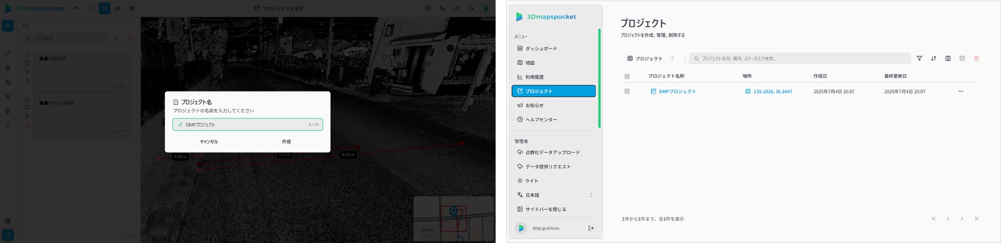 (お知らせ) 点群ビューアー「3Dmapspocket®」機能アップデート実施 メモ・プロジェクトの登録機能で業務進行をよりスムーズに