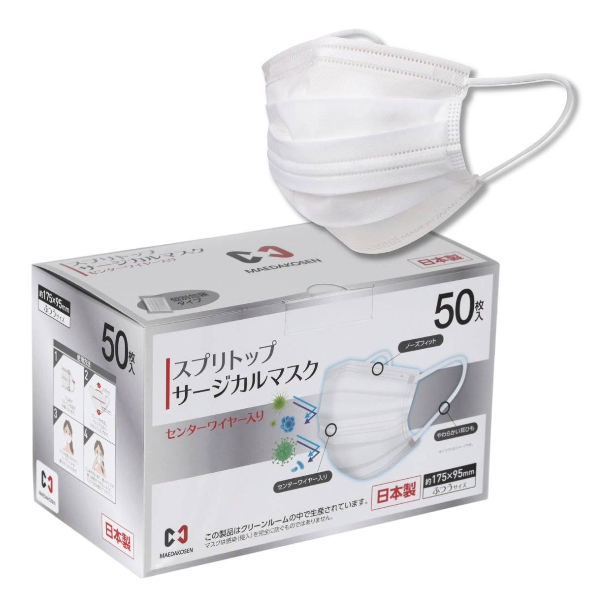 センターワイヤー入りで口元の空間をしっかりキープする設計の『スプリトップサージカルマスク』。