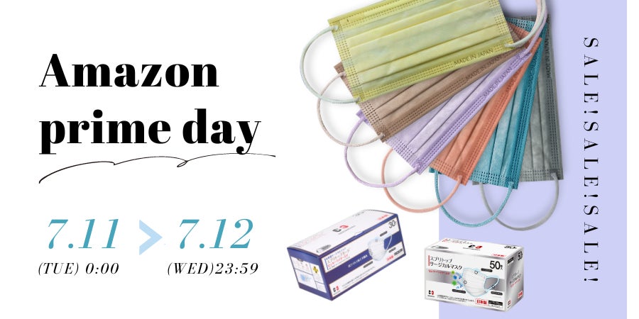 Amazonにて開催される年に一度のビッグセール『Amazon プライムデー』に参加し、人気の日本製マスクを通常価格から20%オフの特別価格にて販売いたします。
