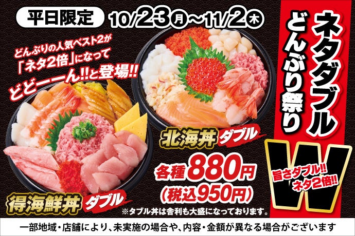 平日限定!ネタ2倍!!旨さダブル!!ネタダブルどんぶり祭り開催!