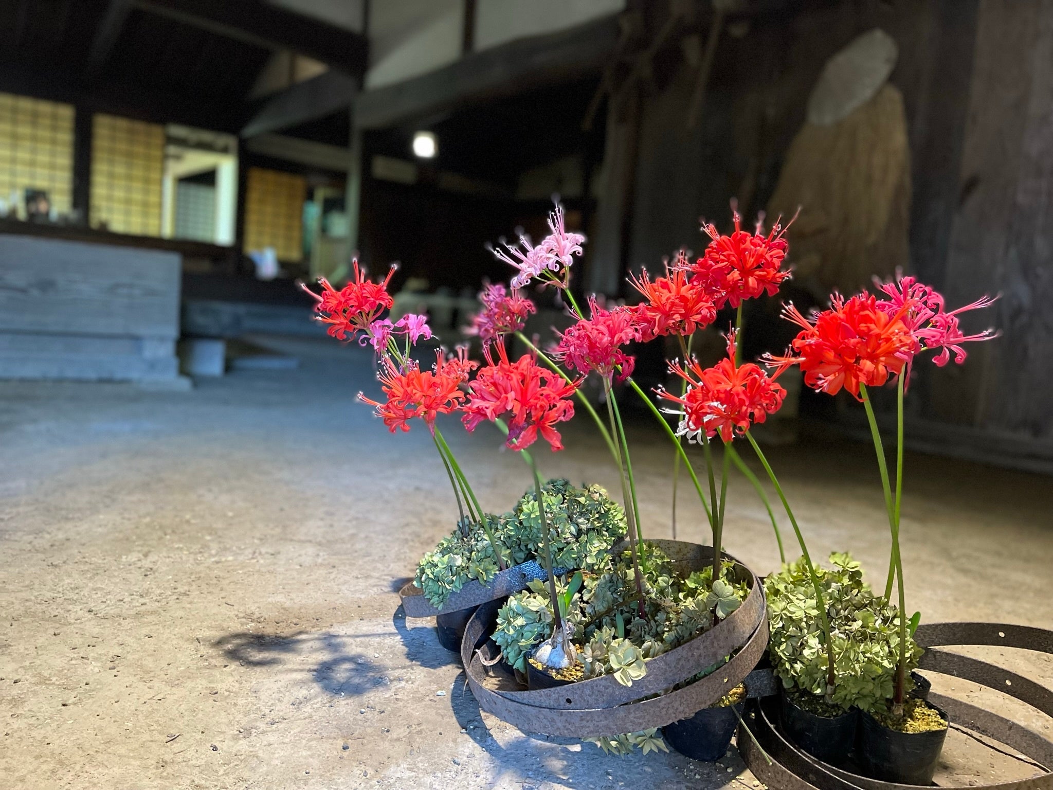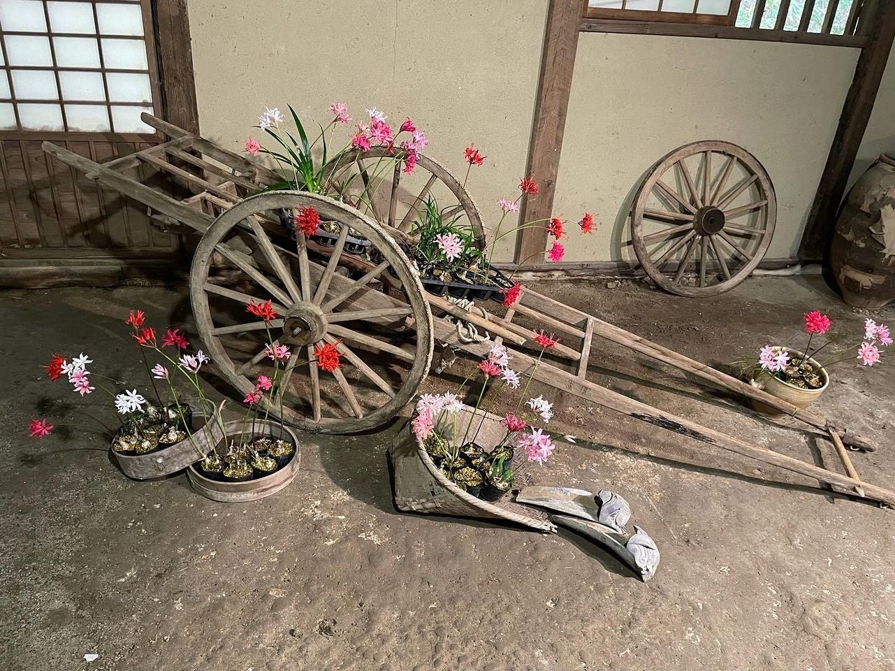 2023年11月後半、加茂荘花鳥園のダイヤモンドリリーは今まさに見頃を迎えています。江戸時代中期から続く古民家とダイヤモンドリリーのコラボは必見! 花に囲まれ、晩秋のタイムトリップを心ゆくまでお楽しみください。古民家カフェ「桑源亭(そうげんてい)」にもぜひお立ち寄りを。