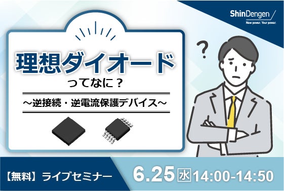 新電元工業株式会社は、損失と発熱を抑えた次世代の逆接続保護への提案と解説を目的とした「理想ダイオード」に関するセミナーを2025年6月25日にライブ配信形式で開催いたします。