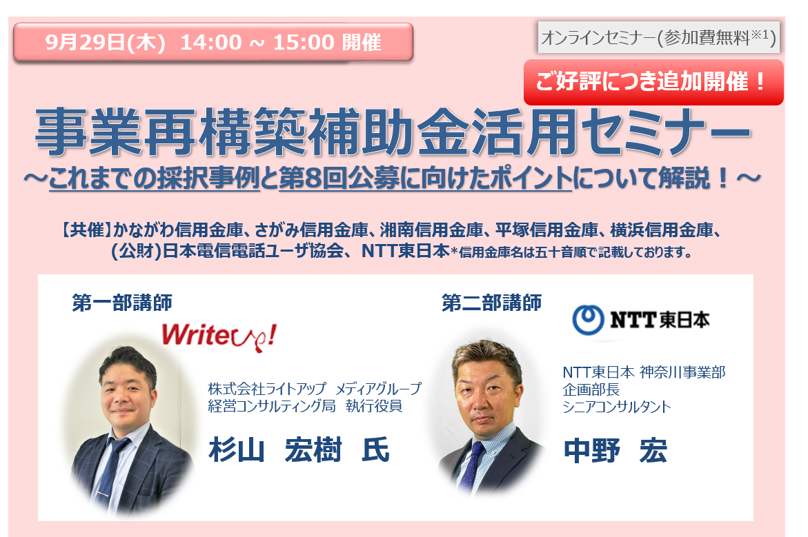 【好評により9/29追加開催】経営者必見!無料・事業再構築補助金活用セミナー