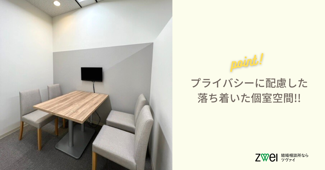 婚活に対しての需要が高まるなかで、ご入会をご検討中のお客さまや当社で活動いただいている会員さまが落ち着ついて婚活に関するご相談をしていただけるように、店舗レイアウトを見直し、ゆったりとしたスペースで各種ご相談ができる相談ブースを設置しています。なお、入会をご検討中のお客さまにはマッチング無料体験や婚活計画作成などをご提供してまいります。