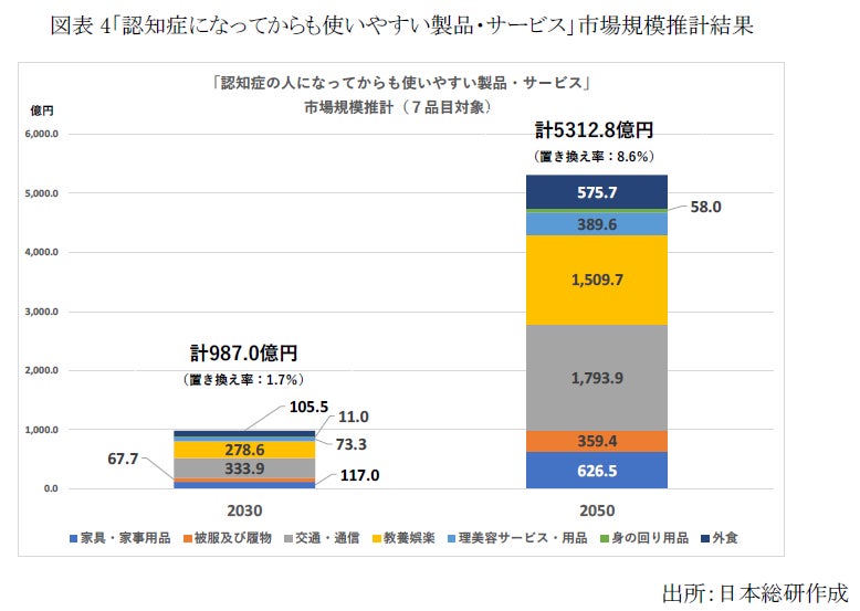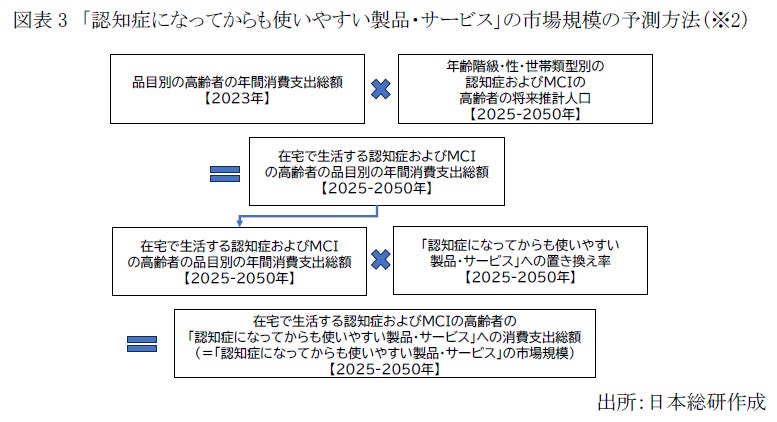 「在宅で生活する認知症およびMCIの高齢者の購買力」「認知症になってからも使いやすい製品・サービスの市場規模」を推計