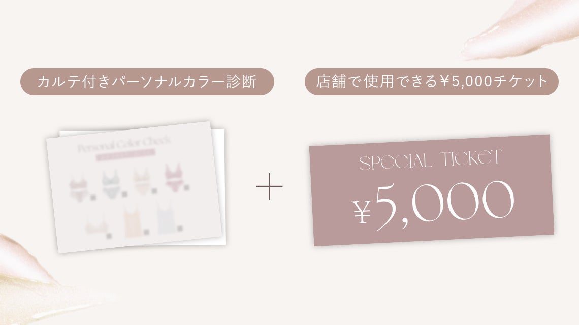 POPUP SHOP店頭で使用できる¥5,000チケット+カルテ付きパーソナルカラー診断