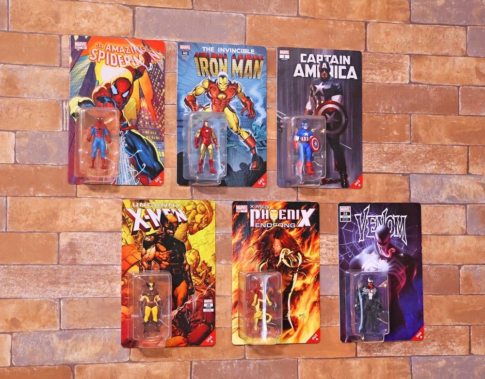 シリーズ1のスパイダーマン、アイアンマン(マーク4)、キャプテン・アメリカ(クラシックスーツ)、ウルヴァリン(ブラウンスーツ)、ダーク・フェニックス、ヴェノムは、カバーA~Cが発売中、カバーD~Fが2024年7月発売予定。組み合わせることで、コレクションの幅がさらに広がります!