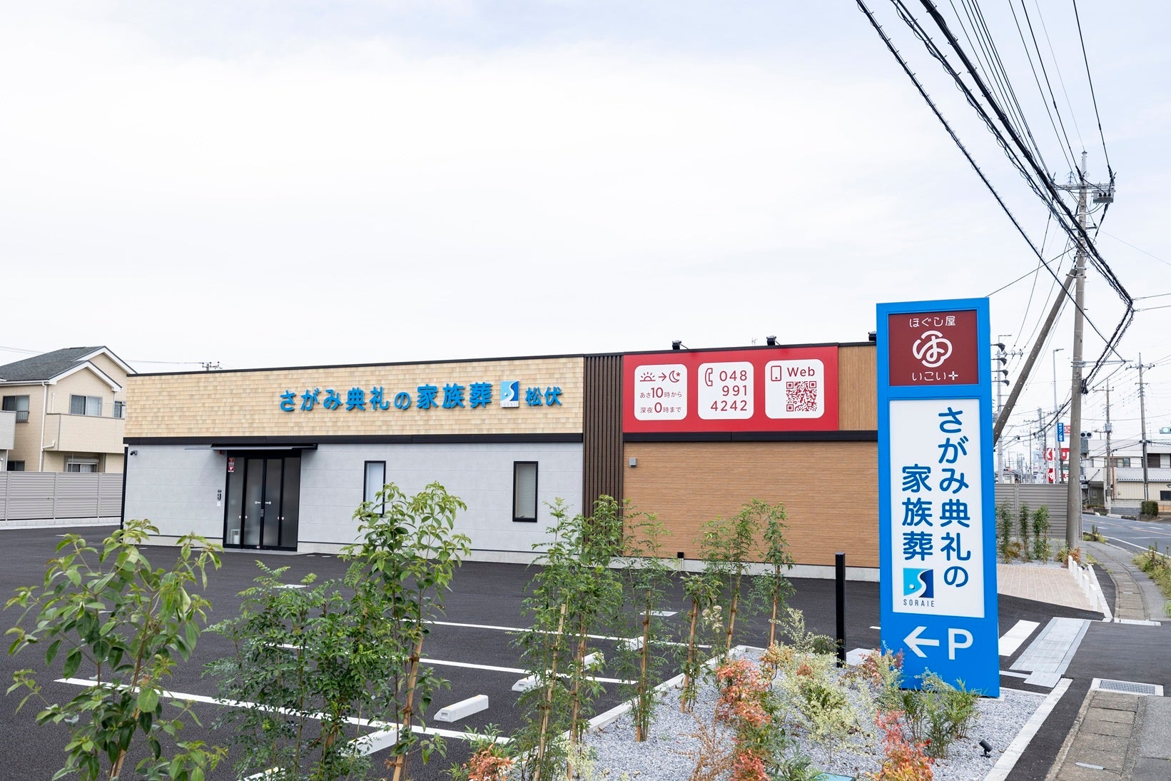 冠婚・葬祭・互助会を柱とした総合結婚式場・葬斎センター・多目的ホールを展開するアルファクラブ武蔵野株式会社(本社:埼玉県さいたま市大宮区、代表取締役社長 和田浩明)は、埼玉県で家族葬を中心とした小規模葬儀を専門に執り行う葬斎施設『さがみ典礼の家族葬 松伏』および『さがみ典礼の家族葬 東冠メモリアル東越谷』の2店舗をグランドオープンいたしました。『さがみ典礼の家族葬 松伏』には、リラクセーションサロン「ほぐし屋 いこい」を併設し、葬儀に限らず日常使いできる葬斎施設として運営いたします。この度のオープンにより、「さがみ典礼の家族葬」は埼玉県内全34施設に拡大。これからも身近な葬斎施設として、ご遺族様の心に寄り添った葬儀を提供いたします。お気軽に施設見学にお越しください。