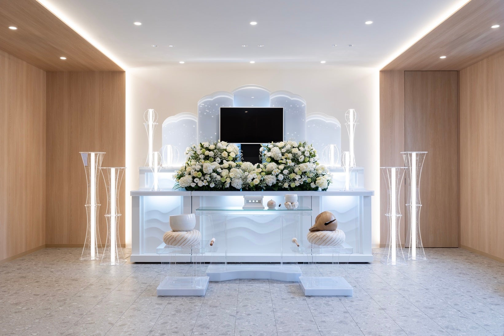 核家族化や新型コロナウイルス感染症の影響を受け、一気に広がりを見せる家族葬。そんな時代のニーズに対応するため、アルファクラブグループが展開する葬祭ブランド「さがみ典礼」から誕生したのが、小規模葬斎施設「さがみ典礼の家族葬」です。1日1組の貸し切りで、故人様やご遺族様の思いに寄り添った葬儀を、専門スタッフがサポートいたします。内観は白や木目を基調とし、時代に合った洋風祭壇をご用意。まるでご自宅にいるような温かみのある空間で、故人様との最期のひとときを安心してお過ごしいただけます。一部施設では施設見学や故人様へのご焼香の際に、IoT技術による無人化対応を実施しています。葬儀以外にも、法事や法要といったあらゆる葬祭の儀式も承っております。