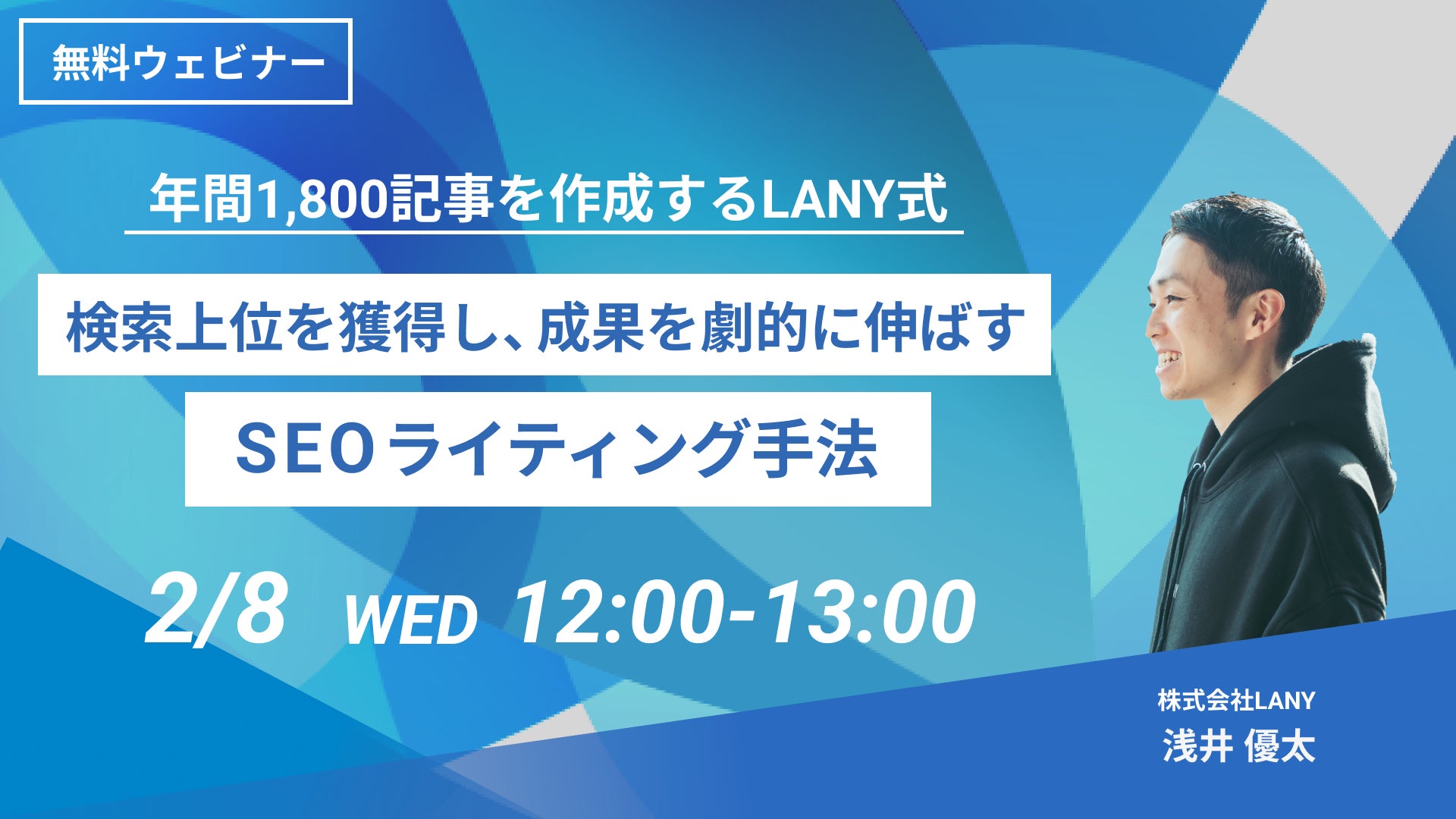 年間1,800記事を作成するLANY式 – 検索上位を獲得し、成果を劇的に伸ばすSEOライティング手法を解説するウェビナーを2/8(水)に開催