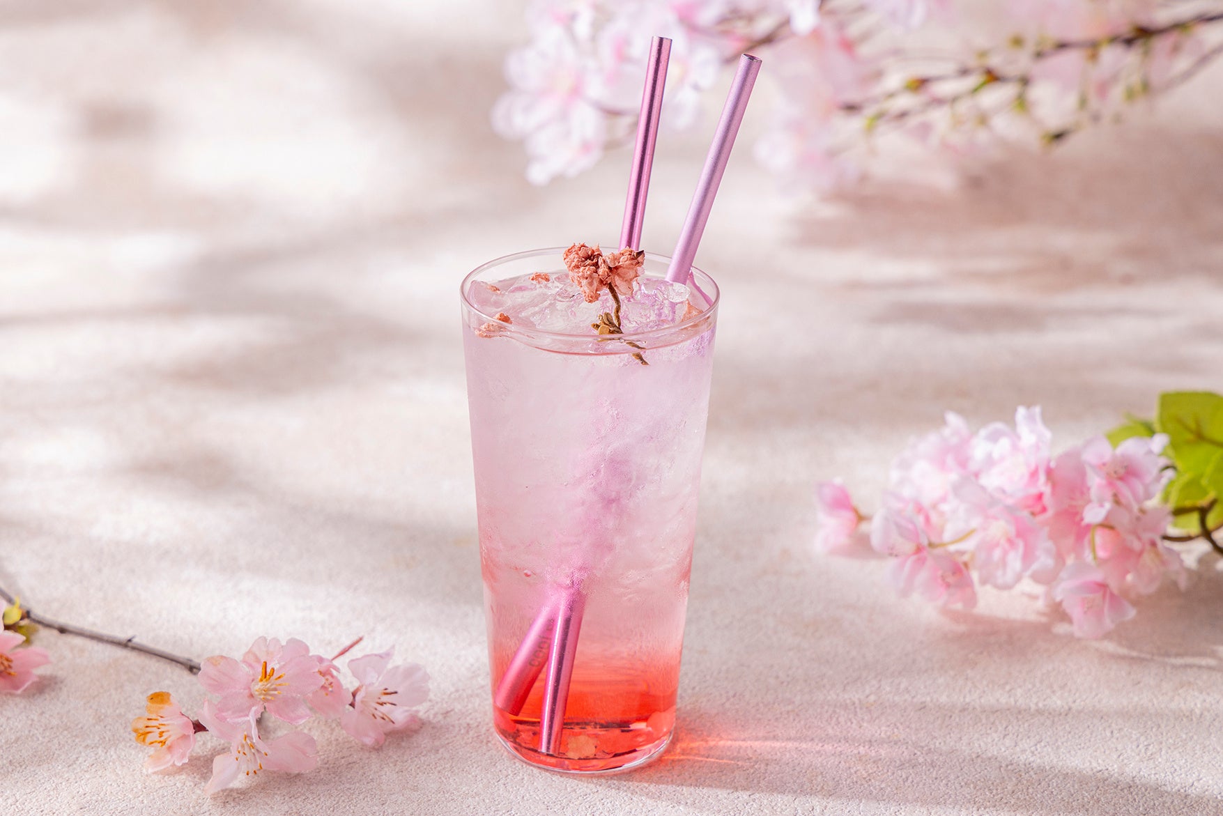 モヒートシロップと桜シロップをソーダアップした、喉越し爽やかなドリンク。中にはこんぺいとうを忍ばせて楽しい食感をプラス。