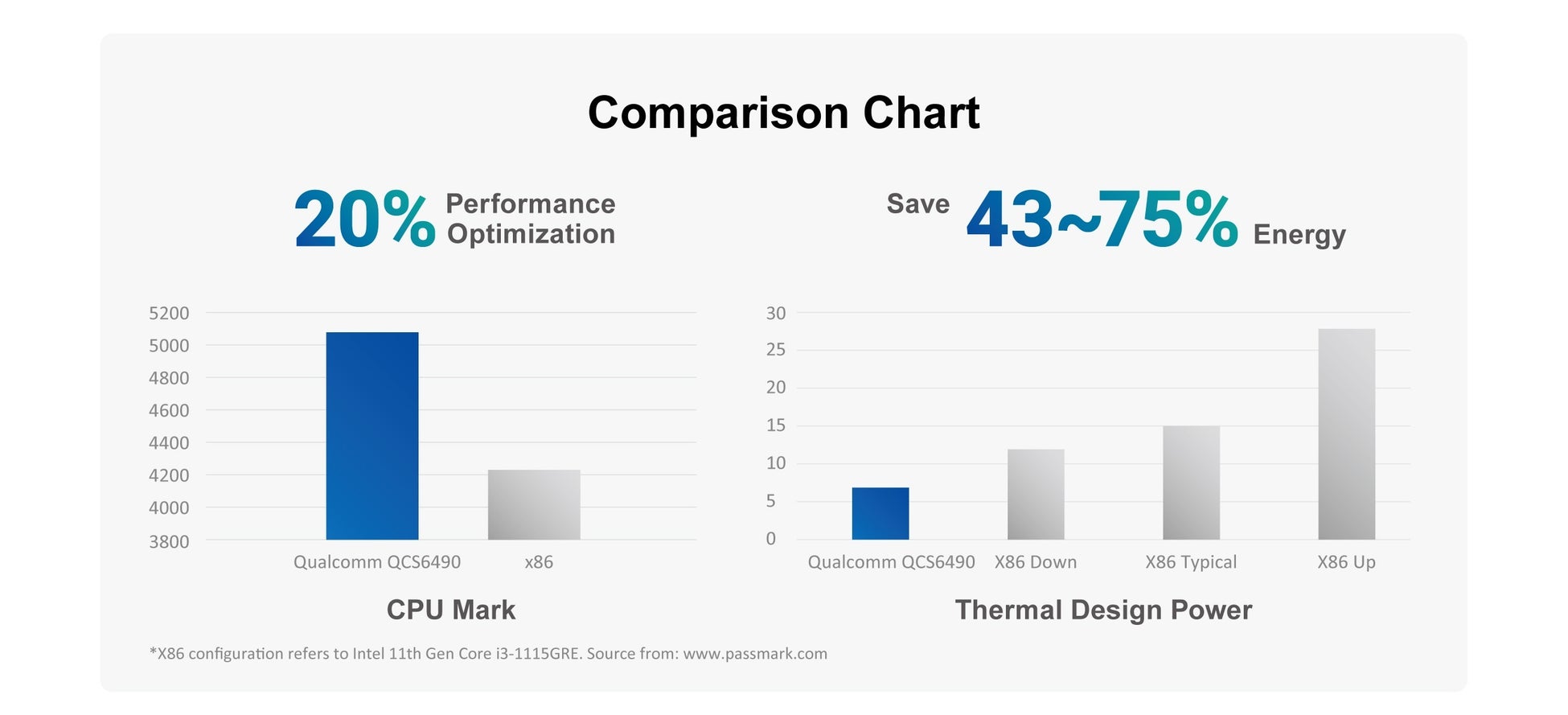 CPU QCS6490 TDP 6.9W 1x Gold plus core 2.7GHz 3x Gold cores 2.4GHz 4x Silver cores 1.9 GHz |