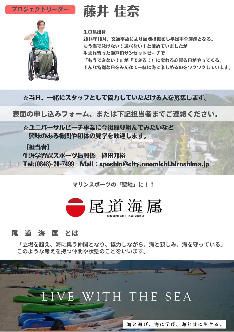 ■ 神戸と同じ、山と海があるまち、尾道で初・昨年に続き3回目のユニバーサルビーチ開催!!
