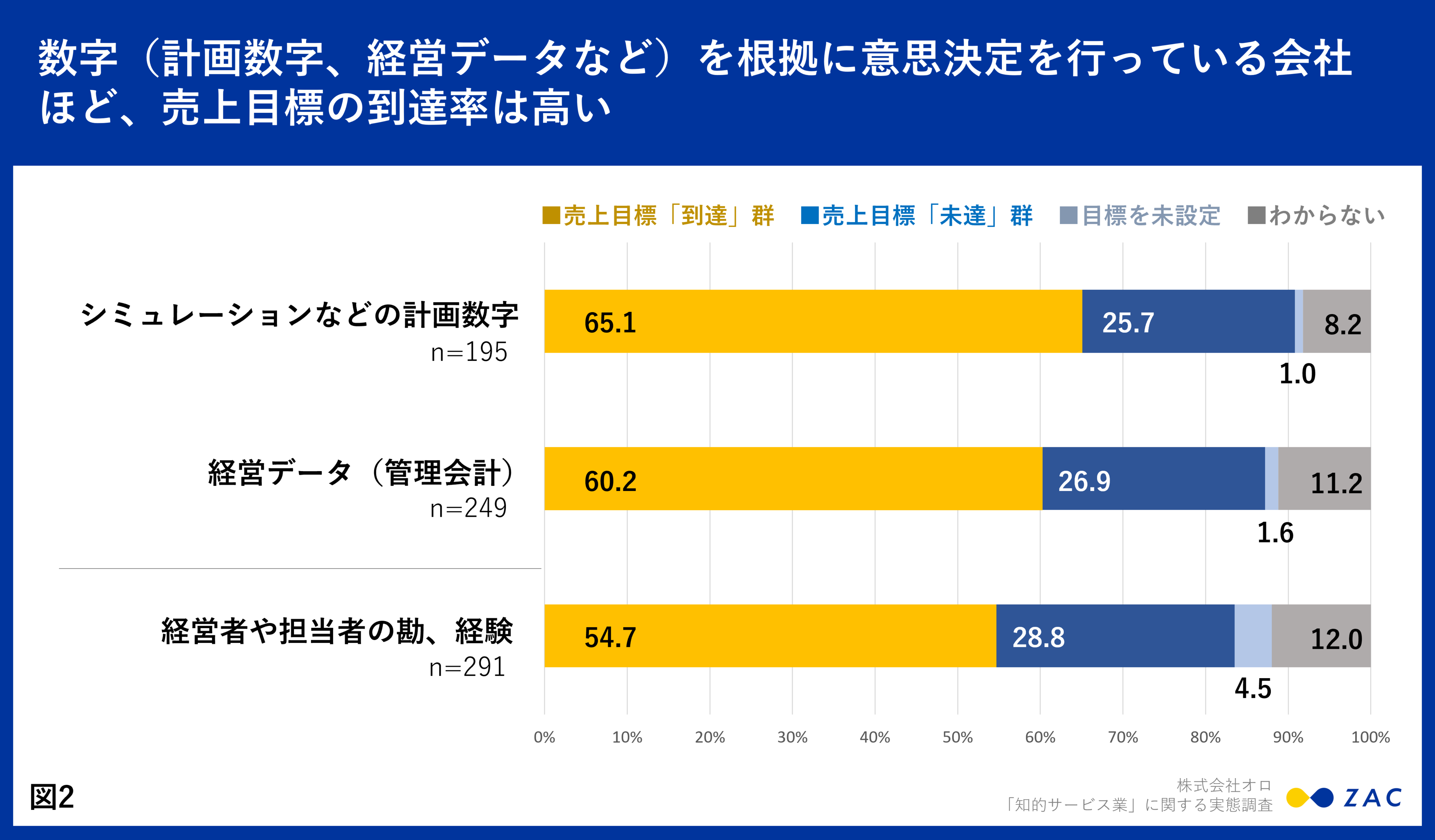 - 数字を根拠に意思決定を行っている会社ほど、売上目標の到達率は高い傾向