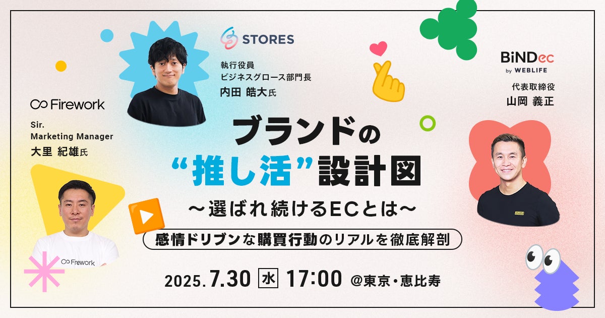 STORES、BiNDec、Fireworkの3社が、ブランドと顧客のつながりを強化する「推し活」をヒントにしたEC体験の作り方をそれぞれの立場から掘り下げていきます。