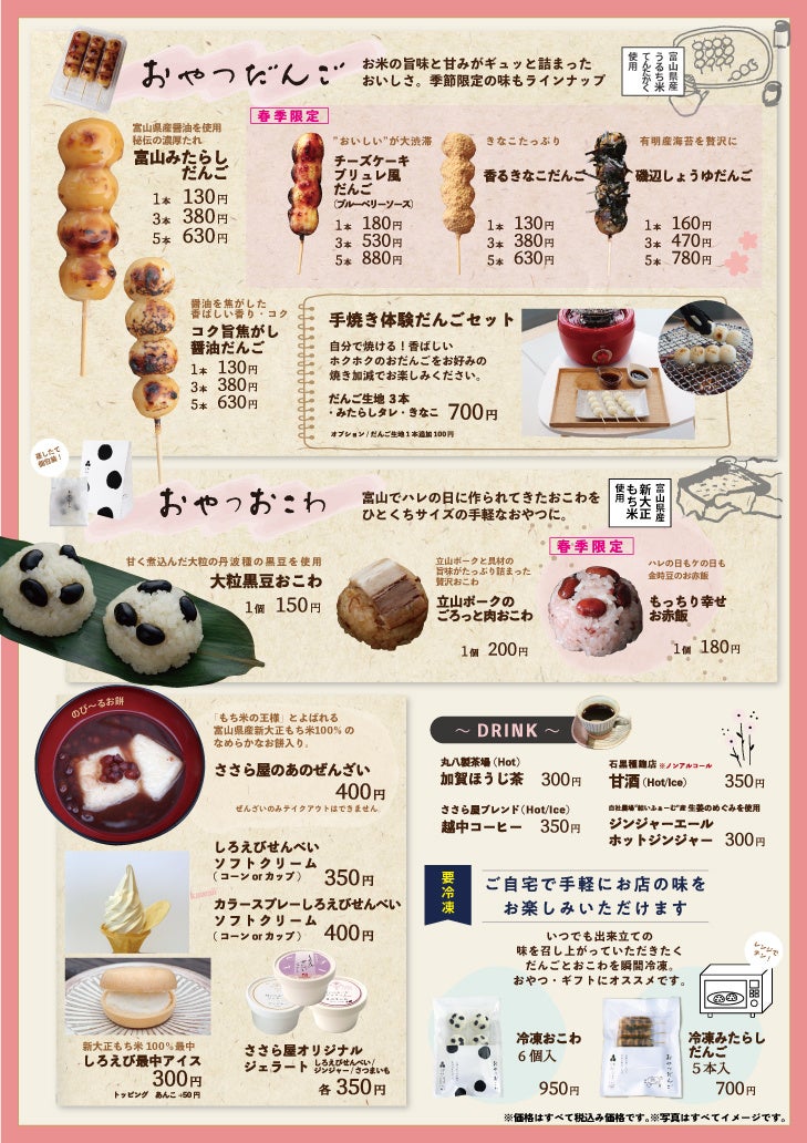 しろえびせんべいの「ささら屋 福光本店」のカフェコーナーに富山米100%のだんごとおこわの専門店「おこめぢゃや~En cafe~」がリニューアルオープン!