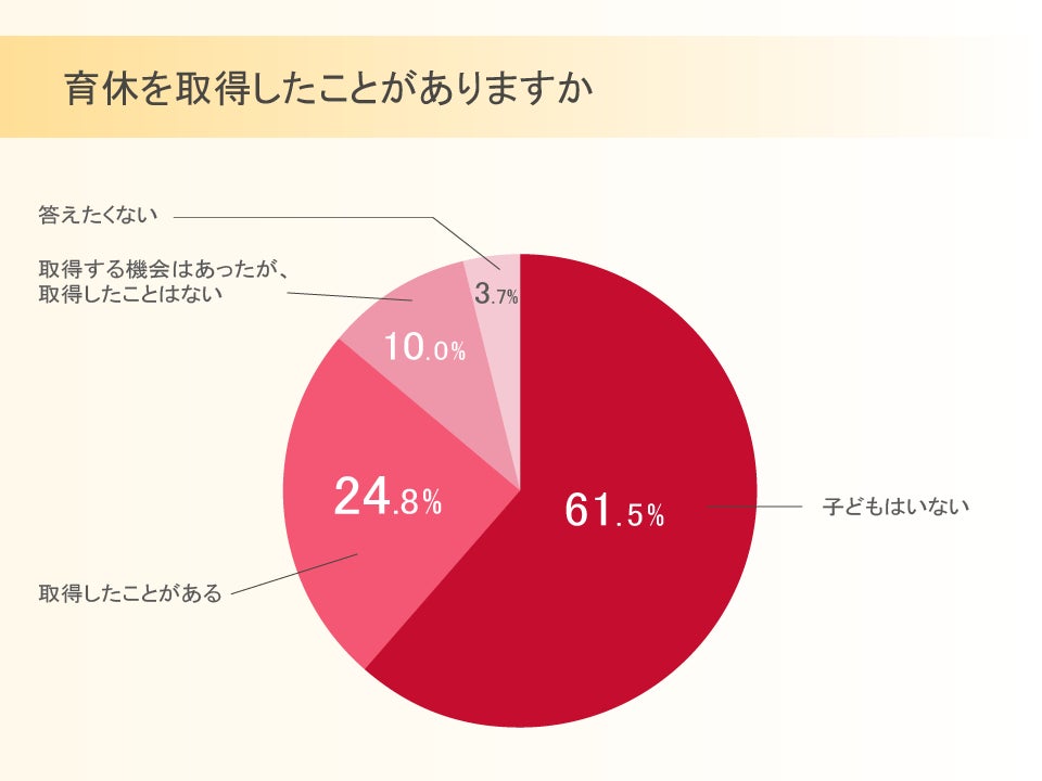 育休取得についてたずねたところ、「子どもはいない」または「答えたくない」との回答を除き、「取得したことがある」人は71.3%、「取得する機会はあったが、取得したことはない」との回答は28.7%でした。