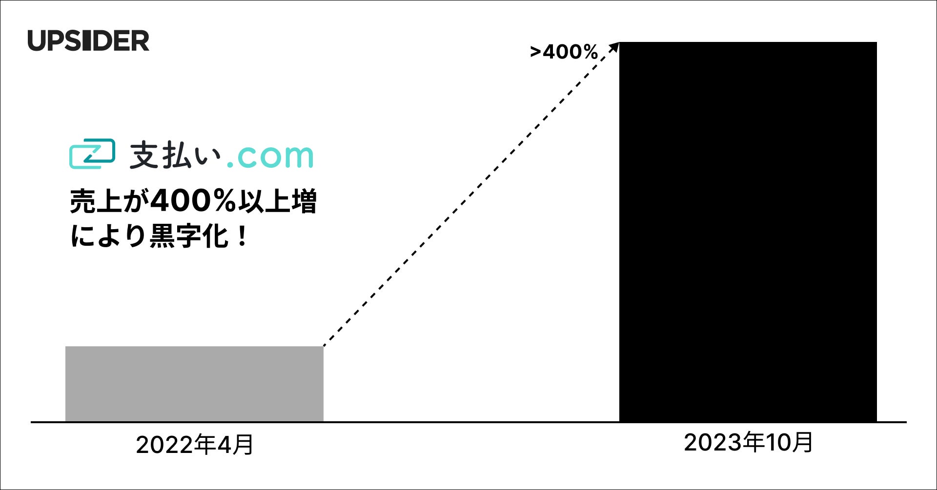 また、2022年4月にリリースした「支払い.com」は、リリースから1年半で黒字化を達成し、売上は前年比4倍に成長しました。