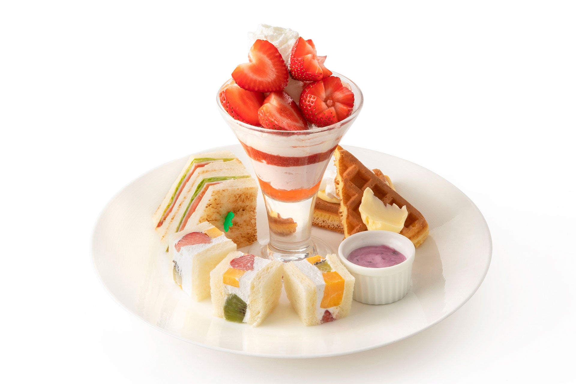 また2:00pmまでのランチ限定メニューや、平日5:00pm以降限定のナイトパフェセットは、ライトミールとデザートのどちらも楽しむことができます。デザートは数種類から選べるものもあり、どちらのメニューにも今の季節は苺を楽しむことができます。