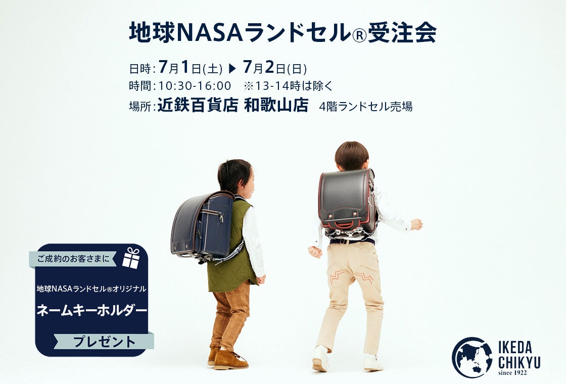 オリジナルランドセル「地球NASAランドセル®」の企画・販売を行う池田地球株式会社(本店:東京都港区:代表取締役 村尾光一)は、7/1(土)~7/2(日) の2日間、近鉄百貨店 和歌山店 4階ランドセル売場にて「地球NASAランドセル®受注会」を開催いたします。
