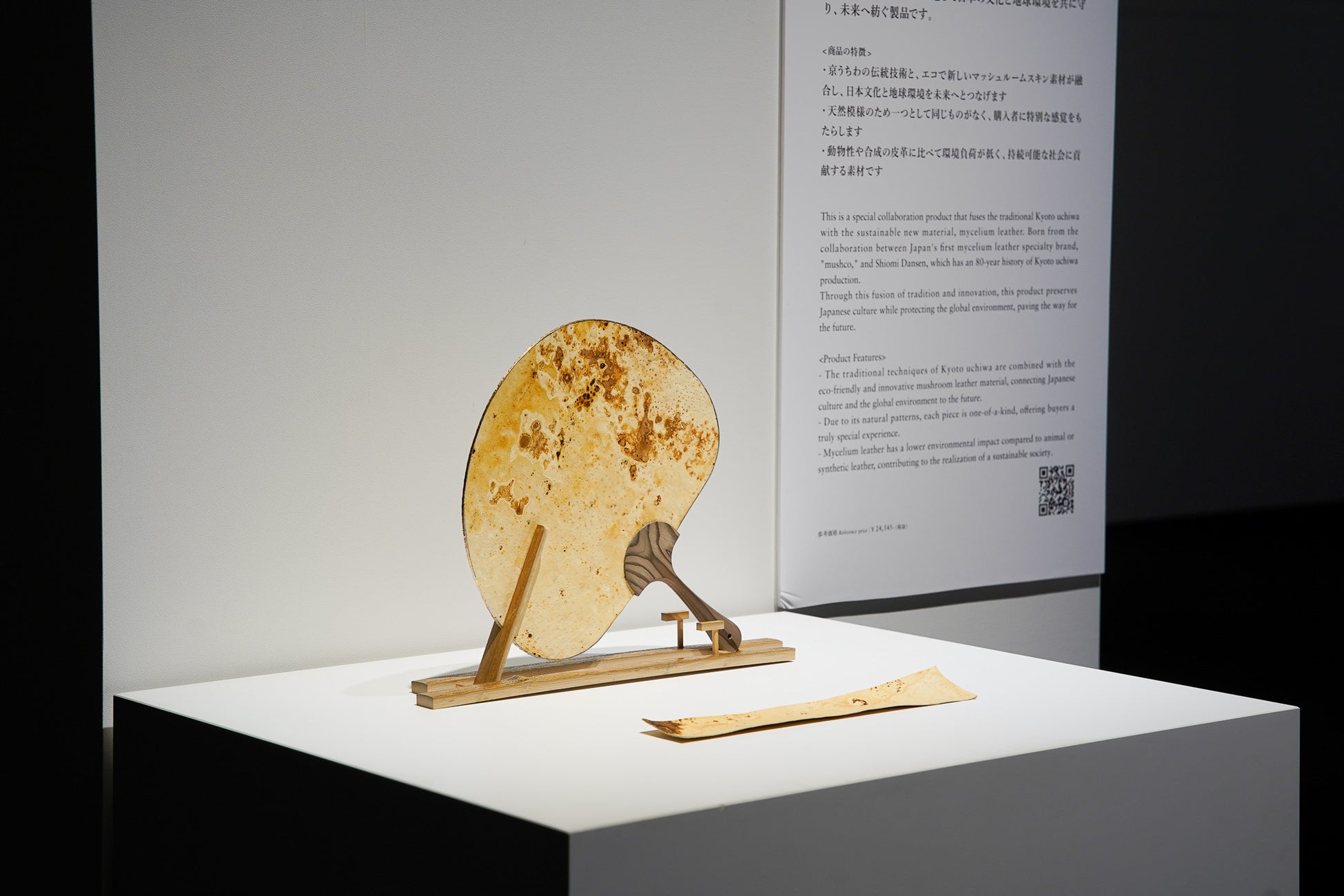 伝統ある京うちわとサスティナブル新素材であるマッシュルームスキン(マッシュルームレザー)が融合した特別なコラボ製品。