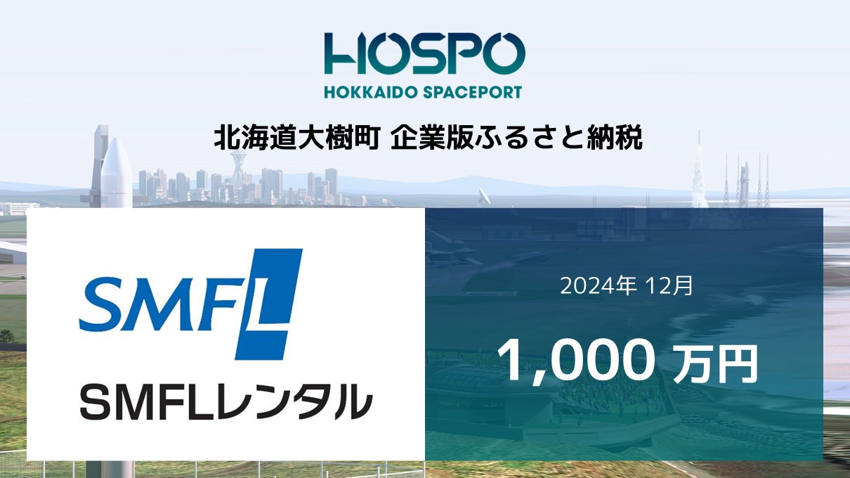 民間にひらかれた商業宇宙港「北海道スペースポート(HOSPO)」を運営する北海道大樹町(町長:黒川豊)とSPACE COTAN株式会社(本社:北海道広尾郡大樹町、代表取締役社長兼CEO:小田切義憲)は、SMFLレンタル株式会社(本社:東京都千代田区、代表取締役社長:大村尚之)より、1,000万円の企業版ふるさと納税の寄附をいただいたことをお知らせします。