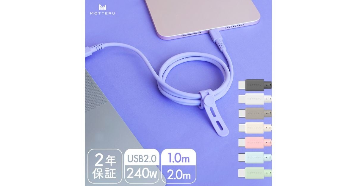 MOTTERU USB2.0で240W対応のUSB-C to USB-Cケーブルに新色5色が追加!