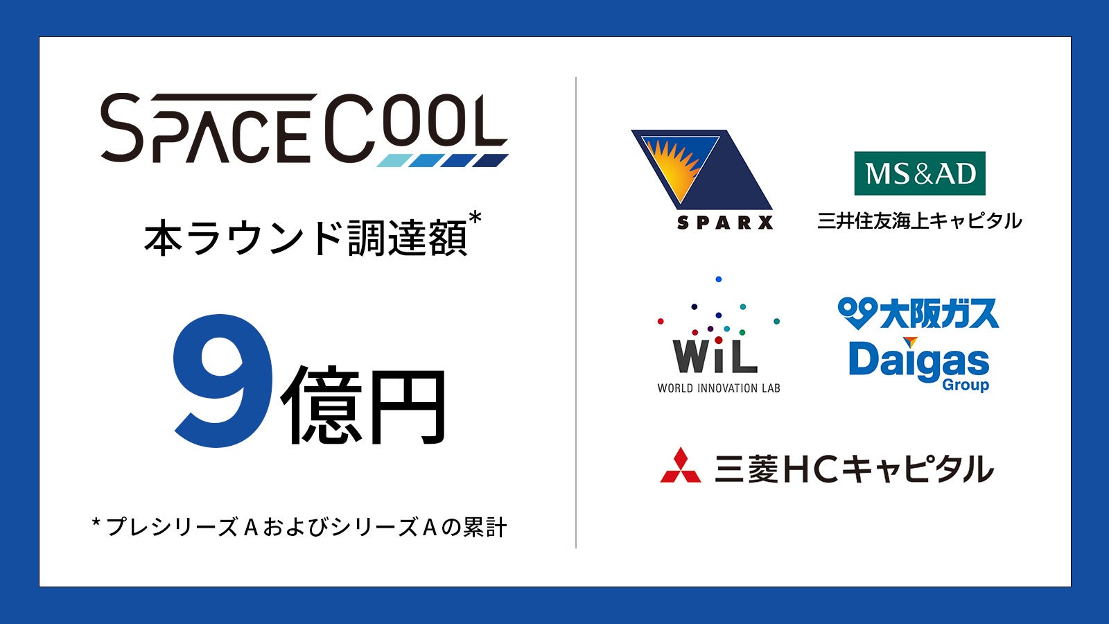 この度、プレシリーズAラウンド及びシリーズAラウンドにおいて、総額9億円の資金調達を達成いたしました。私たちのビジョンに共感し、未来を共に描いてくださる力強いパートナーとして、既存投資家であるWiL様、大阪ガス様に併せ、今回新たにスパークス・アセット・マネジメント様、三井住友海上キャピタル様、三菱HCキャピタル様に”SPACECOOLチーム”に加わっていただきました。心より感謝申し上げます。