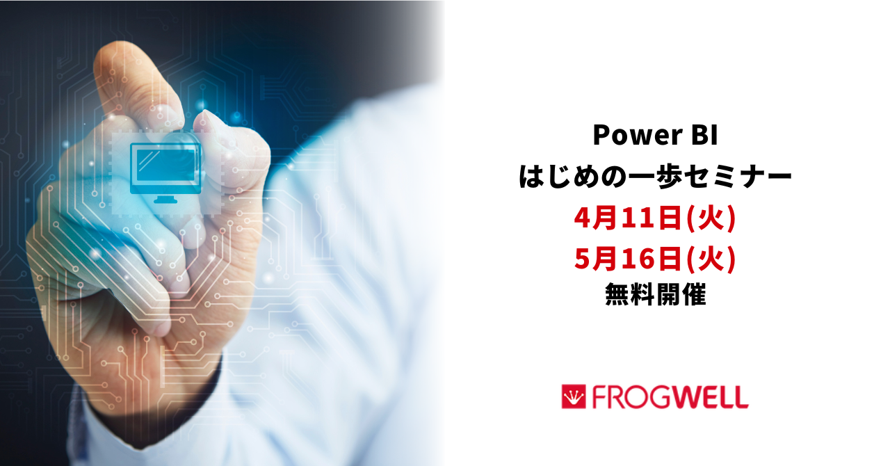 Power BIとは何か、何ができるのかをご紹介するご担当者様向けセミナーをデータ・プロセスコンサルティング会社のフロッグウェル(株)が4月11日(火)/5月16日(火)に無料開催