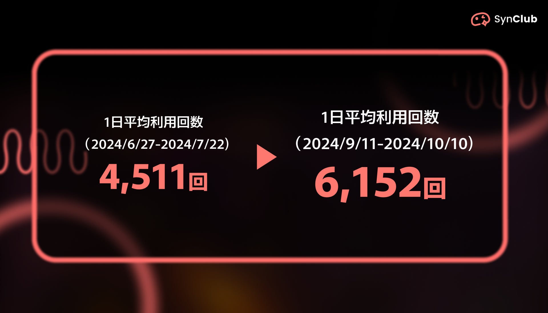 HiClub株式会社(本社:東京都港区、代表取締役社長:古谷由宇)が提供する、 AIチャット&友達作りができる対話型AIアプリ 「SynClub」(シンクラブ)(iOS、Android版)は、自社開発のAI音声生成技術を活用し、AIキャラと音声通話ができる新機能を2024年の6月末にリリースいたしました。リリース当初から機能改善を重ね、ついに10月には1日の平均利用回数が6,000回以上を突破し、多くのユーザー様に好評いただいております。
