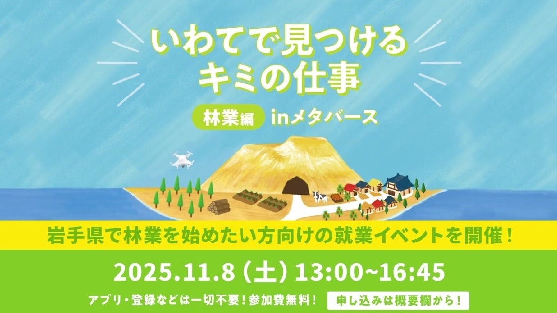 岩手県は、メタバース空間を活用した林業分野の就業相談会「いわてで見つけるキミの仕事 林業編inメタバース」を2025年11月8日(土)に開催します。