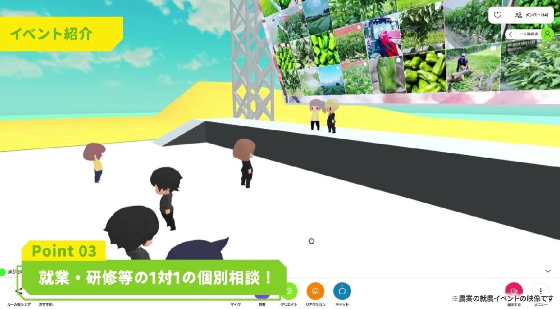 そこで、新規就業者の確保に向け、メタバース空間を活用し、全国の就業希望者を対象とした就業相談会を開催するものです。