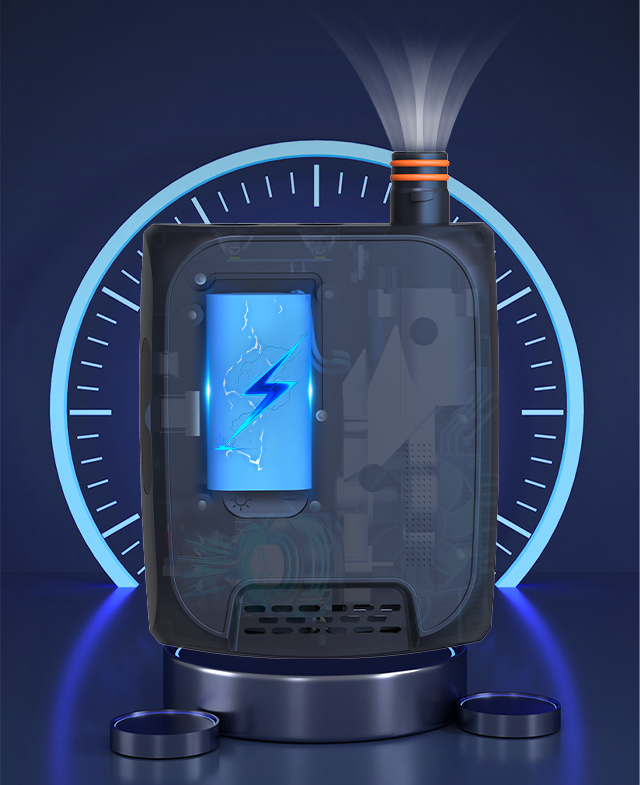 「NW02-P」は2,200mAhの大容量バッテリーを4つ搭載しているので、最大約20分間使用可能(約SUP 1.5個分、エアーテント6個分)!さらに、USB Type-C充電ポート搭載でスマホのように手軽に充電可能!