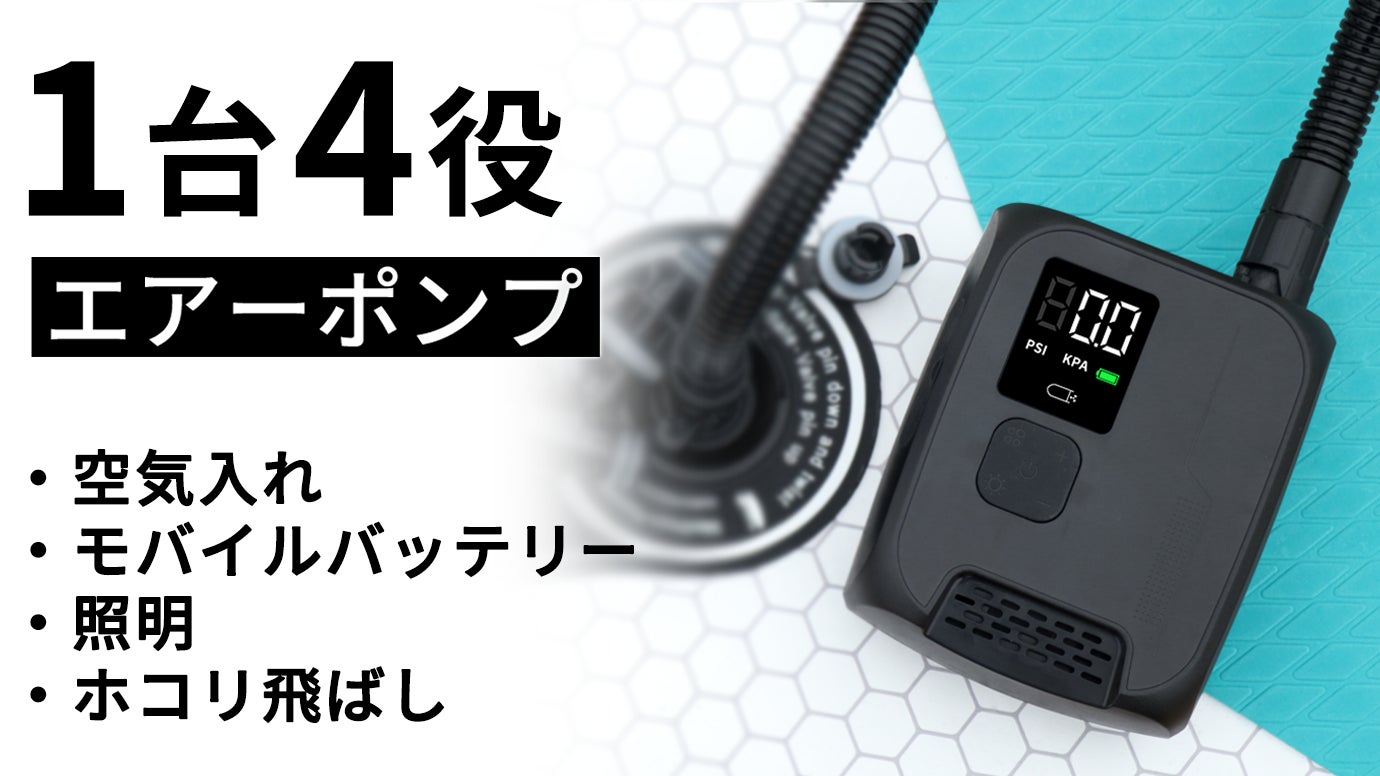 便利な機能満載!空気入れのほか、ホコリ飛ばし・緊急時の照明・モバイルバッテリーとしても大活躍!
