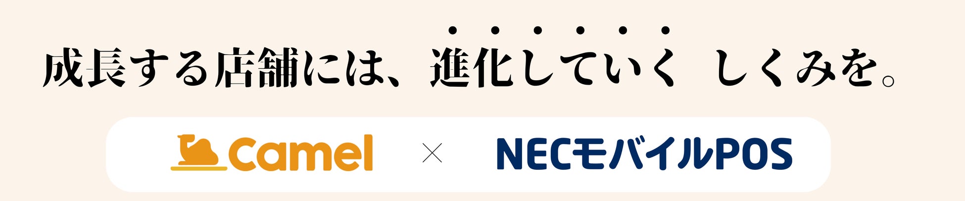 また、今回の出展では、デリバリー注文一元管理サービス「Camelシリーズ」を提供する株式会社tacomsと共同出展致します。フードデリバリー・テイクアウトを始めとした『店外注文』にまつわる課題解決は「Camelシリーズ」が。会計・清算処理をはじめとした『POS』や、その他周辺機器や周辺サービスとの『連携』にまつわる課題解決には「NECモバイルPOS」が、それぞれ解決致します。まずはお悩みや課題をご相談下さいませ。