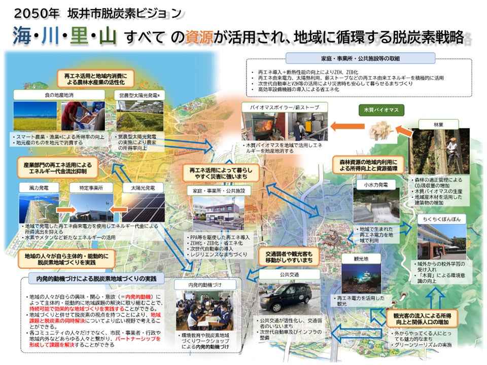 第二次坂井市環境基本計画策定にあたり、令和3年2月26日(金曜日)に坂井市環境審議会から答申が行われました。第二次坂井市環境基本計画では、「良好な生活環境の創出」「豊かな自然と歴史資源の保全・育成」「循環型社会の形成」「地球温暖化対策の推進」といった5つの行動方針を10年後の数値目標とともに設定。また、地球温暖化対策を特に重要度の高いものとし、国内外の脱炭素化への動きを踏まえ、坂井市として2050年までの温室効果ガス総排出量実質ゼロ「ゼロカーボン」を目指すことを掲げました。