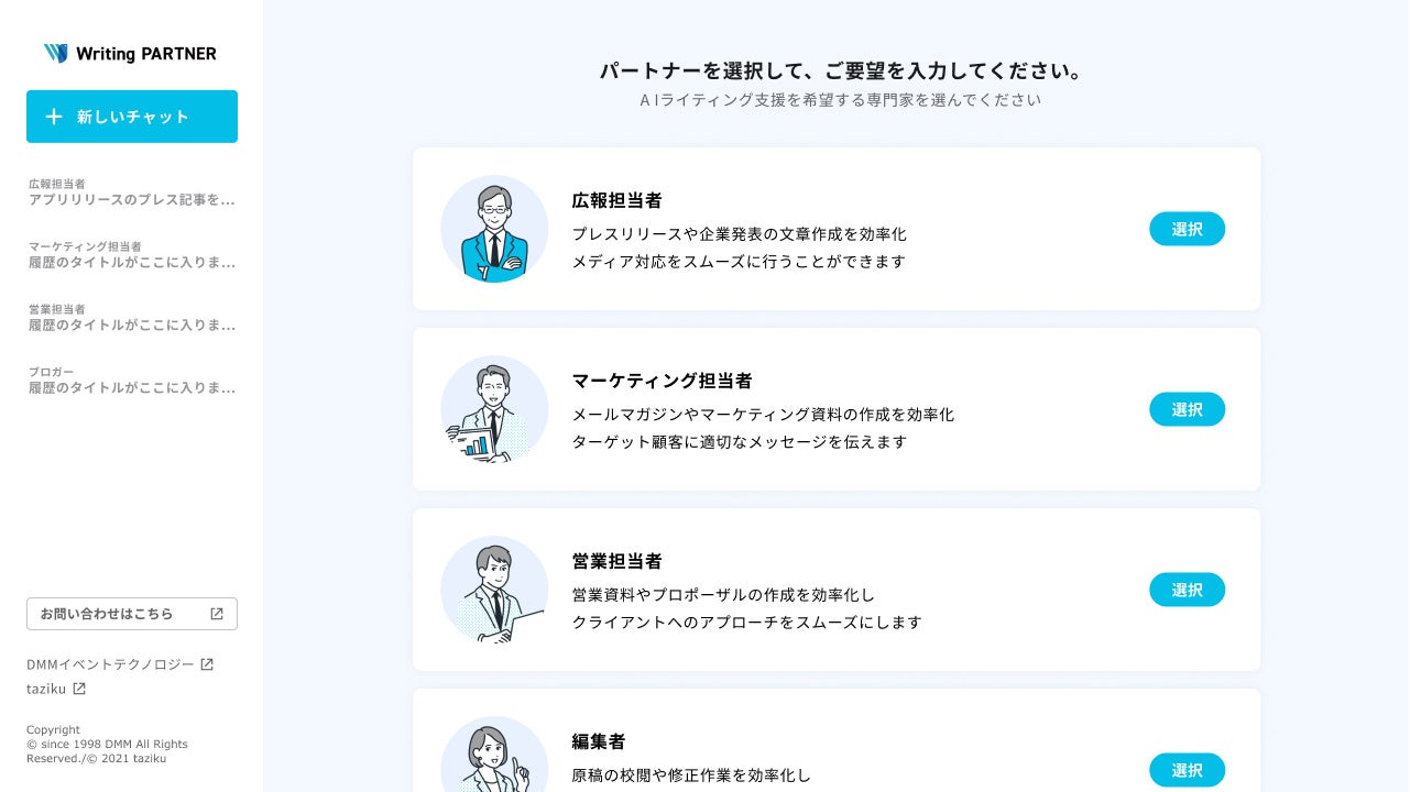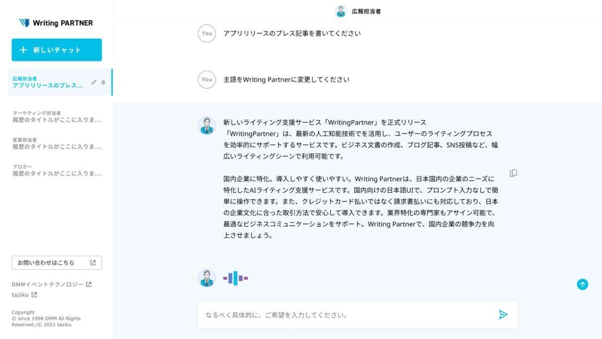 【DMMイベントテクノロジー】ChatGPTのAPIを活用した企業担当者向けAIライティング支援サービス「Writing Partner(ライティングパートナー)」の提供を開始