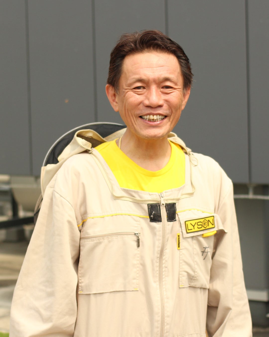 「若手社員からのアイデアでスタートした都市養蜂。長年ホテルで働いてきましたが、まさか自分が蜂を育てるとは思ってもいませんでした。京都の夏の酷暑や冬の厳しい寒さのなか、作業服を着て面布を被り、毎週行う養蜂活動は大変ながら、毎度楽しく行っています。東山や鴨川、梅小路公園の豊かな草花から蜂さんたちが集めてきた美味しいはちみつ、是非皆さまに召しあがっていただければと思います。」